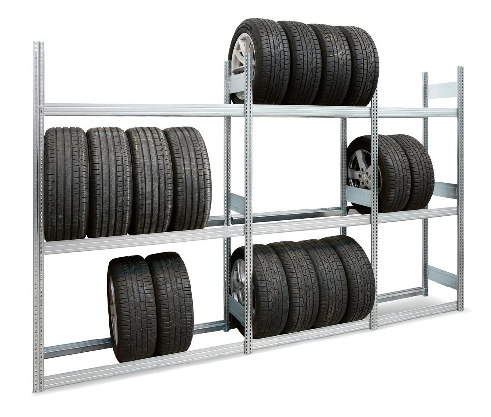 ∙ Platzsparende Lagermöglichkeit für Kompletträdern (Reifen mit Felgen) ∙ Verstellbare Stufenbalken, schnelle und einfache Montage ∙ Abgeschrägte Auflageflächen ∙ Zusätzliche Aussteifungen sind nicht erforderlich ∙ Oberfläche verzinkt