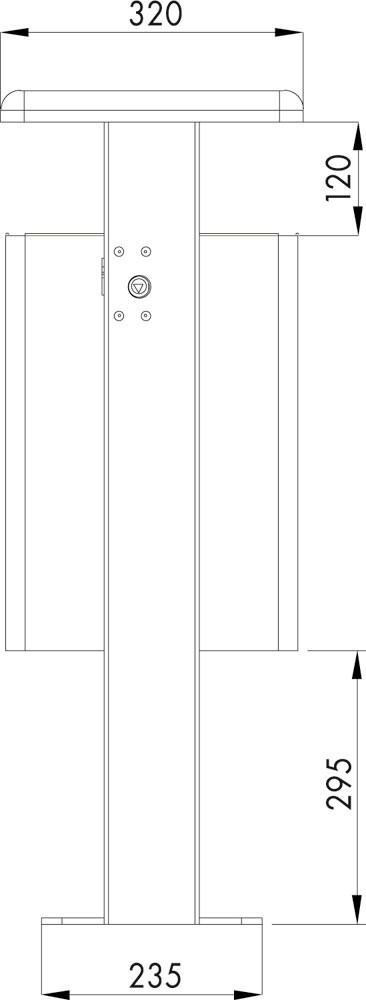∙ Stahlblech feuerverzinkt ∙ Eingrifföffnung zum besseren Handling ∙ Abgerundete Haube aus 3 mm Stahlblech ∙ Dreikantschloss geschützt im Ständer integriert ∙ Behälter zum Entleeren schwenk- und abnehmbar ∙ Mit gelochtem Boden für den Wasserablauf ∙ Behältervolumen 40 Liter