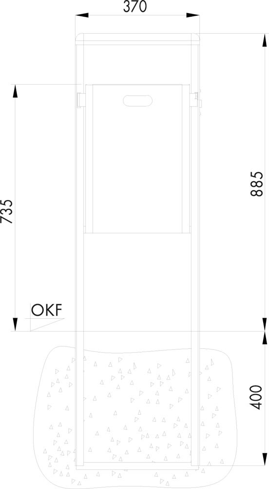 ∙ Stahlblech feuerverzinkt ∙ Eingrifföffnung zum besseren Handling ∙ Abgerundete Haube aus 3 mm Stahlblech ∙ Dreikantschloss geschützt im Ständer integriert ∙ Behälter zum Entleeren schwenk- und abnehmbar ∙ Mit gelochtem Boden für den Wasserablauf ∙ Behältervolumen 40 Liter