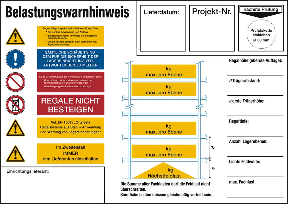 Ausführung Warnschild Belastungswarnhinweis für Fachbodenregal