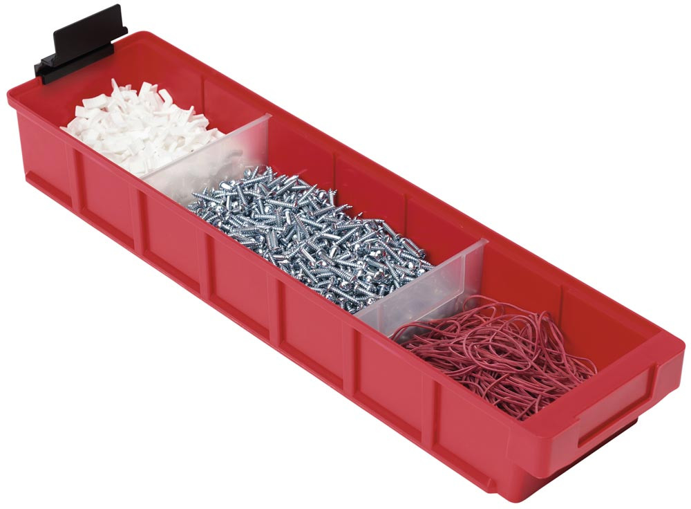 Regalkasten, PP, BxTxH 152x600x83 mm, Farbe rot, VE 10 Stück, inkl. 1 Trennwand