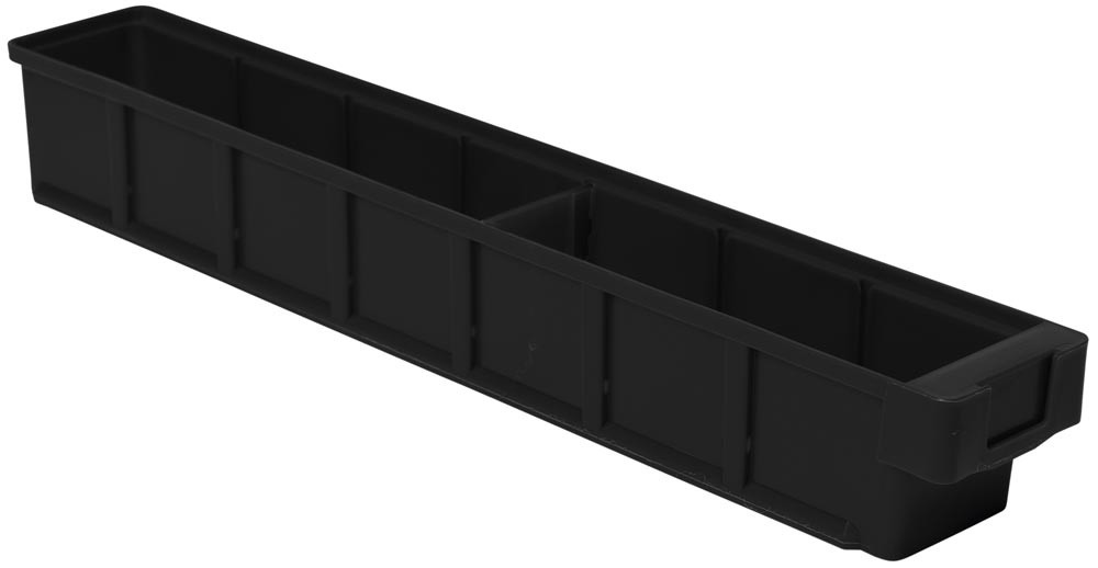Regalkasten, leitfähiges PP, BxTxH 93x600x83 mm, Farbe schwarz, VE 16 Stück, inkl. 1 Trennwand pro Kasten