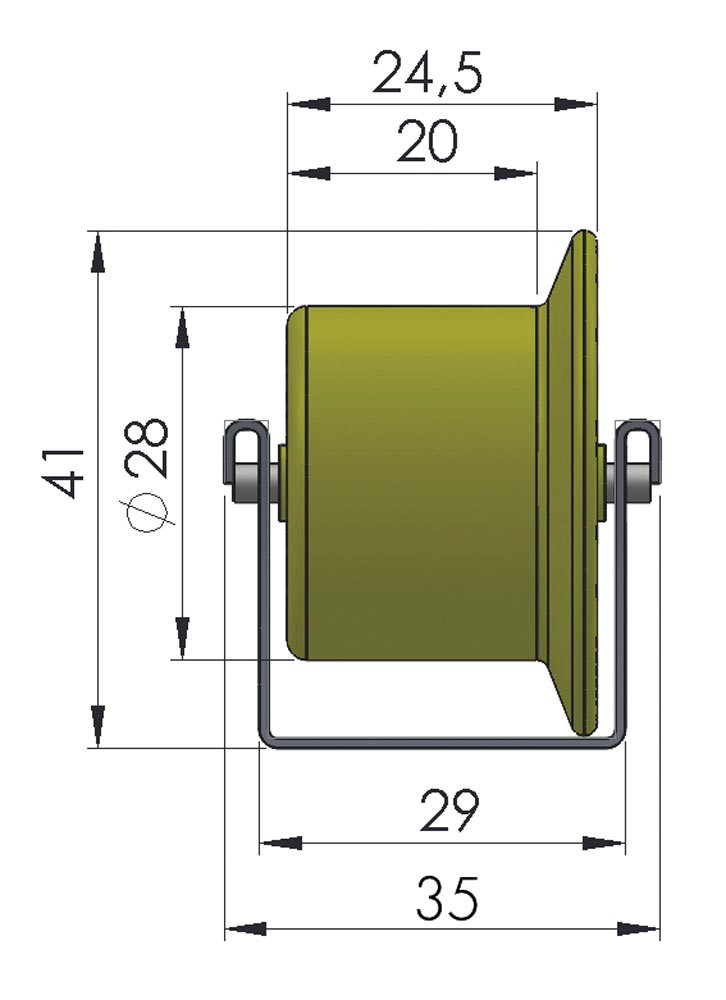 Röllchen-U-Leisten, Profil 26x29x26 mm, verzinkt, Kunststoffrolle mit Spurkranz, Durchm. 28/41 mm, Traglast 6 kg/Rolle, Achsabstand 83 mm