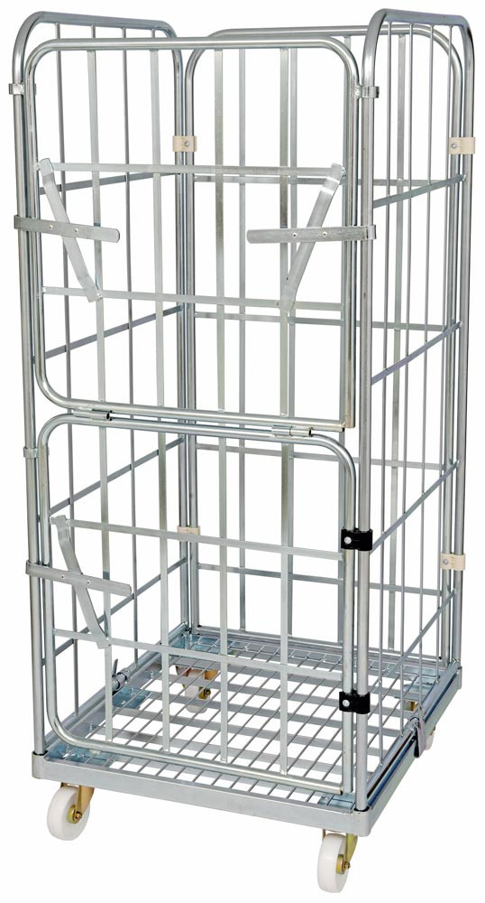 Rollbox, 4-seitig (halb abklappbare Vorderwand), Nutzhöhe 1460 mm, LxBxH 810x720x1640 mm, Bodenplatte aus Stahl, verzinkt