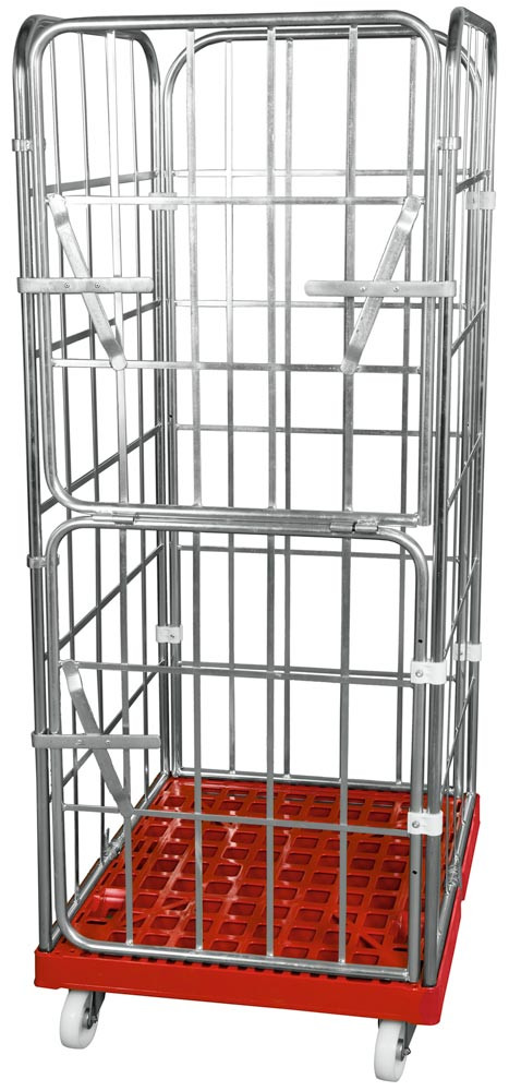 Rollbox, 4-seitig (halb abklappbare Vorderwand), Nutzhöhe 1650 mm, LxBxH 810x720x1850 mm, Bodenplatte aus HDPE, RAL 3000 feuerrot