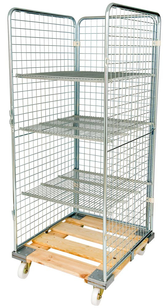 Rollbox mit Drahtgitterwänden, 3-seitig, Nutzhöhe 1020 mm, LxBxH 810x720x1200 mm, Bodenplatte aus Holz, natur