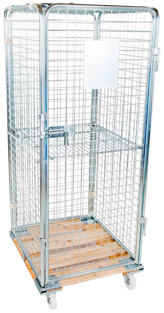 Rollbox mit Drahtgitterwänden, 5-seitig (1 Tür), 1 Boden, Nutzhöhe 1585 mm, LxBxH 810x720x1800 mm, Bodenplatte aus Holz, natur
