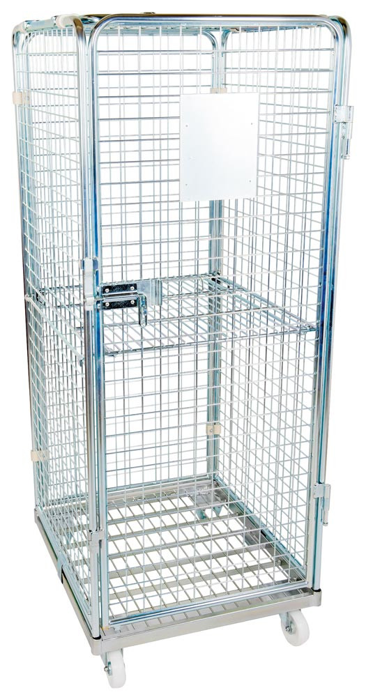 Rollbox mit Drahtgitterwänden, 5-seitig (1 Tür), 1 Boden, Nutzhöhe 1585 mm, LxBxH 810x720x1800 mm, Bodenplatte aus Stahl, verzinkt