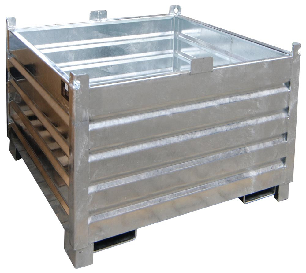 Sammelbehälter, Stahl, Traglast 1000 kg, Volumen 1,0 cbm, LxBxH 1200x1200x850 mm, verzinkt