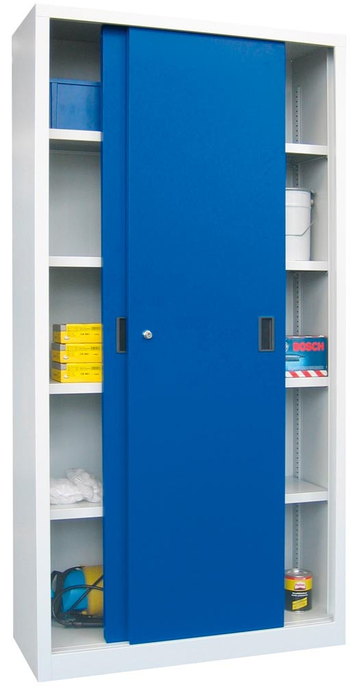 Schiebetürenschrank, Vollblechtüren, 4 verzinkte Böden, ohne Trennwand, BxTxH 1000x500x1950 mm, RAL 5010 E875885