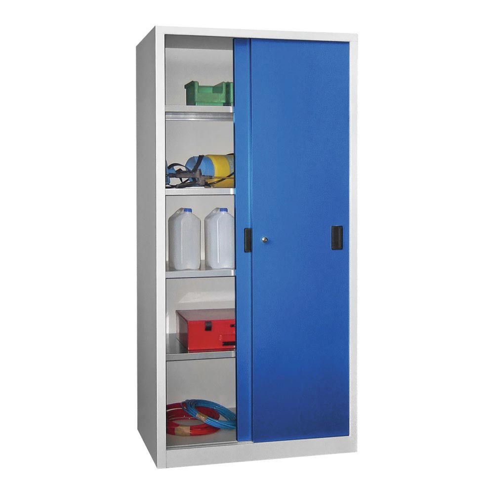 Schiebetürenschrank, Vollblechtüren, 4 verzinkte Böden, ohne Trennwand, BxTxH 1000x400x1950 mm, RAL 7035/5010 E875882