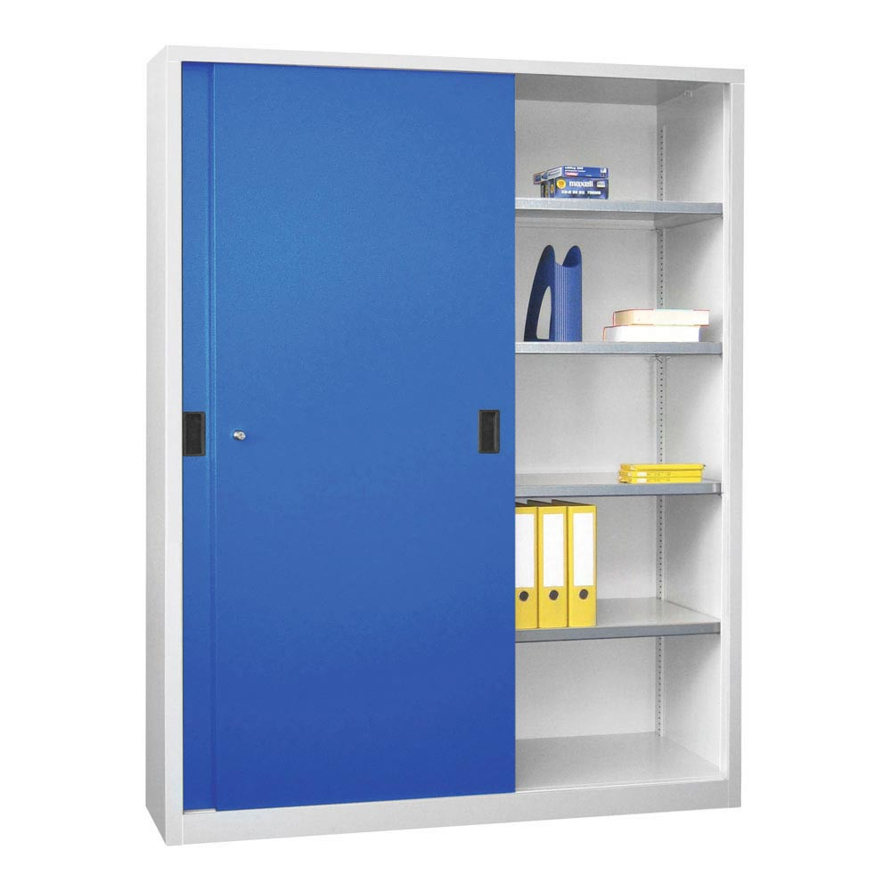 Schiebetürenschrank, Vollblechtüren, 4 verzinkte Böden, ohne Trennwand, BxTxH 1000x500x1950 mm, RAL 5010 E875885