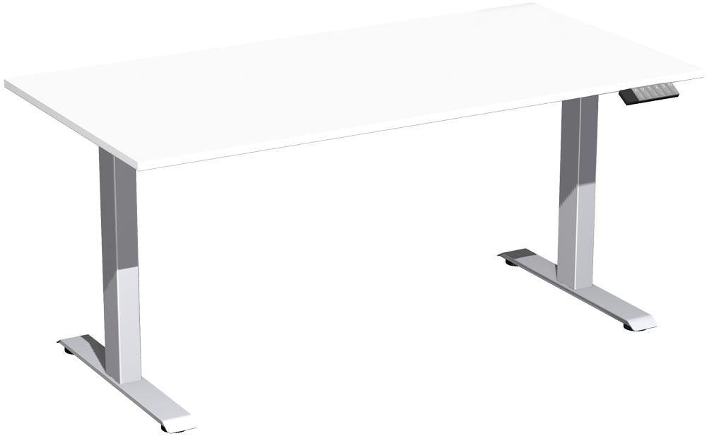 Schreibtisch, elektr. höhenverstellbar, BxTxH 1600x800x630-1280 mm, Melamin-Platte 25 mm, weiß/silber