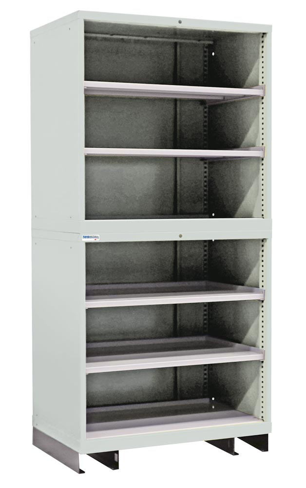 ∙ Modularer Aufbau, problemlos erweiterbar ∙ Schrankgehäuse 2-teilig fest verschraubt ∙ Hohe Belastbarkeit bis 4000 kg bei gleichmäßig verteilter Flächenlast ∙ Hohe Mobilität durch integrierten Hubwagensockel ∙ Farbe Korpus / Front RAL 7035 lichtgrau / RAL 5012 lichtblau