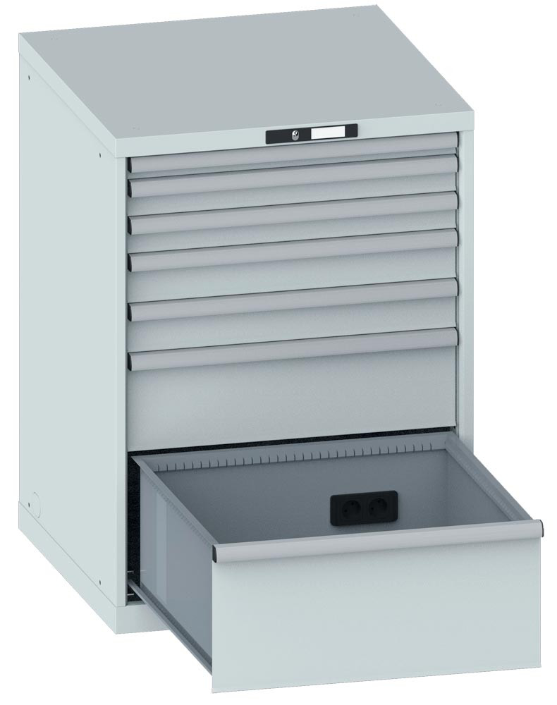 Schubladenschrank, 8 Schubl. 1x50/2x75/2x100/2x150/1x200,4 Steckdosen, BxTxH 717x725x1000,RAL7035 E6422273