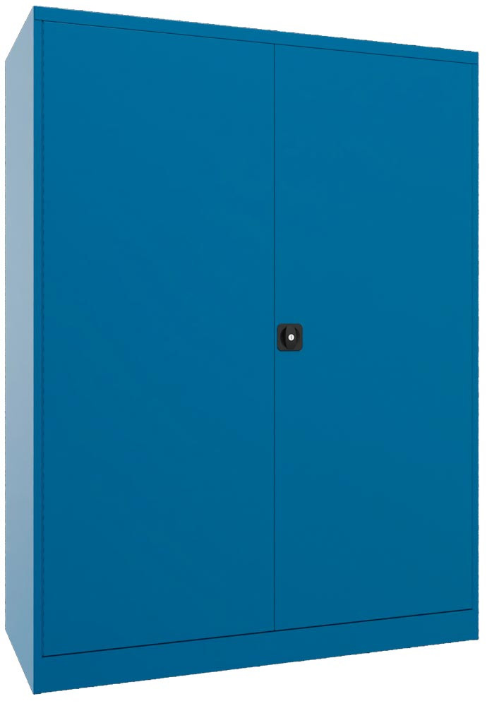 ∙ Besonders stabile, verwindungssteife Stahlblechkonstruktion ∙ Oberfläche pulverbeschichtet ∙ Schränke mit gemeinsam verschließbaren Flügeltüren mit Verstärkungstaschen ∙ Die Türen sind über einen dreiriegeligen Drehgriff mit integriertem Zylinderschloss inkl. 2 Schlüsseln verschließbar ∙ Türöffnung 180 ° ∙ Belastbarkeit je Boden 120 kg, je Schublade 60 kg bei gleichmäßig verteilter Last ∙ Gehäuse-Belastbarkeit 1300 kg ∙ Einrichtungselemente im Raster von