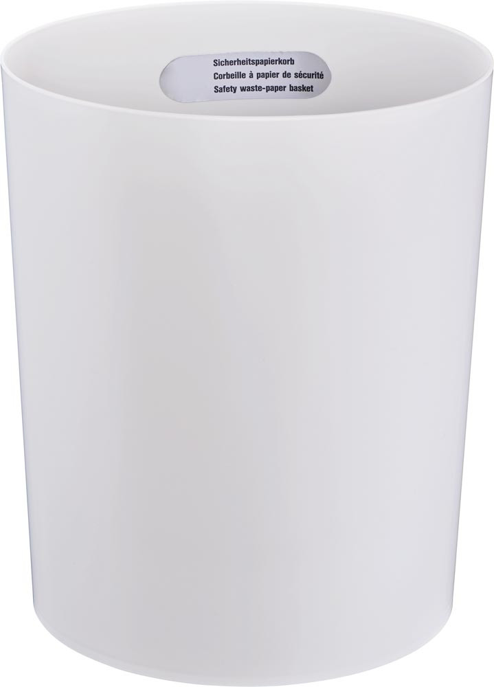 · Aus schwer entflammbarem Sicherheitskunststoff · Er verhindert, dass ein im Papierkorb entstandenes Feuer auf die Umgebung übergreift - die höchste Stufe der Sicherheit aus Kunststoff · TÜV-geprüft