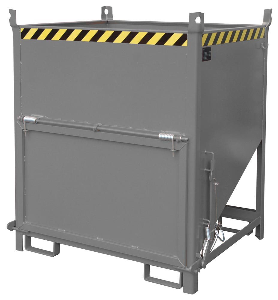 Silobehälter, LxBxH 1000x1200x935 mm, Vol. 0,5 cbm, Traglast 750 kg, stirnseitige Klappe, lackiert RAL 7005 mausgrau E872900