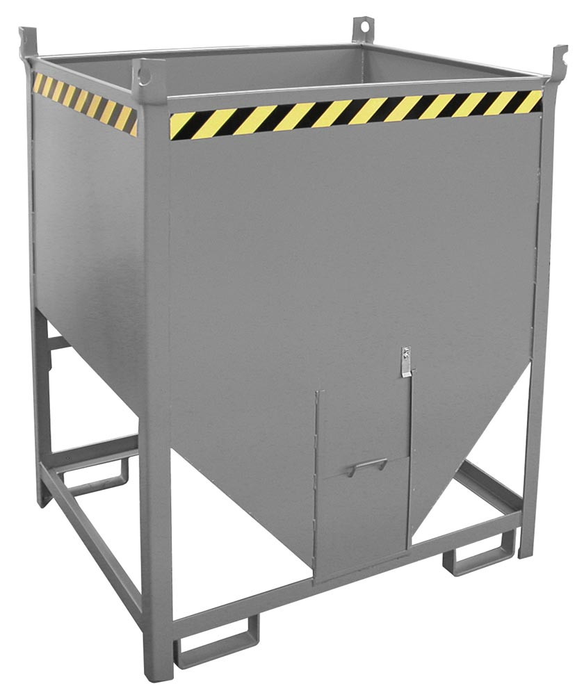 Silobehälter, LxBxH 1000x1200x1495 mm, Vol. 1,0 cbm, Traglast 1500 kg, stirnseitiger Schieberverschluss, lackiert RAL 7005 mausgrau