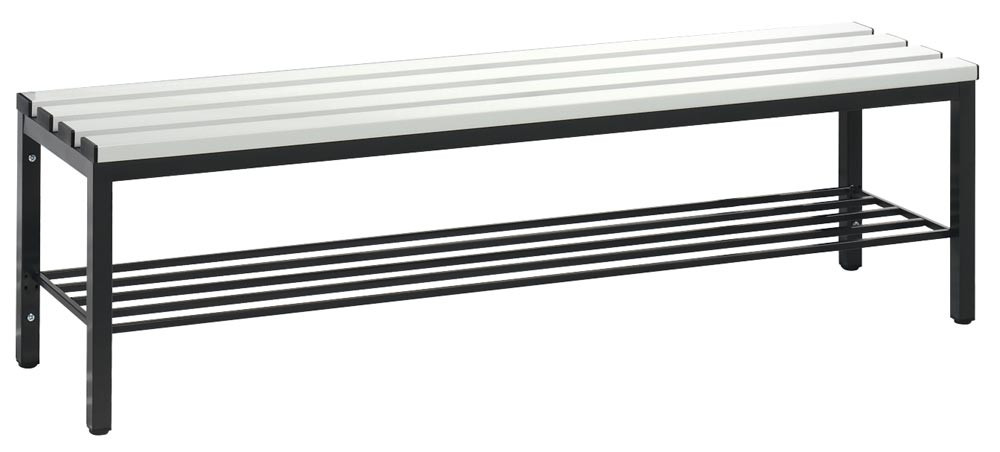 Garderobenbank, Kunststoffleisten, mit Schuhrost, TxH 403x1710 mm, Länge 1000 mm, RAL 7021 E869000
