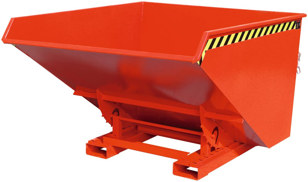 Späne-Selbstkippbehälter mit Abrollsystem, Volumen 0,30 cbm, LxBxH 1260x770x835 mm, lackiert RAL 3000 rot