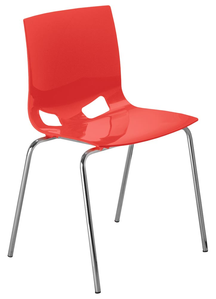 Stapelstuhl, Kunststoffschale rot hochglänzend, 4-Fuß-Gestell verchromt, Sitz-BxTxH 445x410x465 mm, Gesamthöhe 830 mm, VE 4 Stück