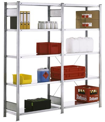 Steckregal, verzinkt, Grundfeld, 5 Fachböden, verzinkt, Fachlast 150 kg, BxTxH 875x400x2000 mm E871452