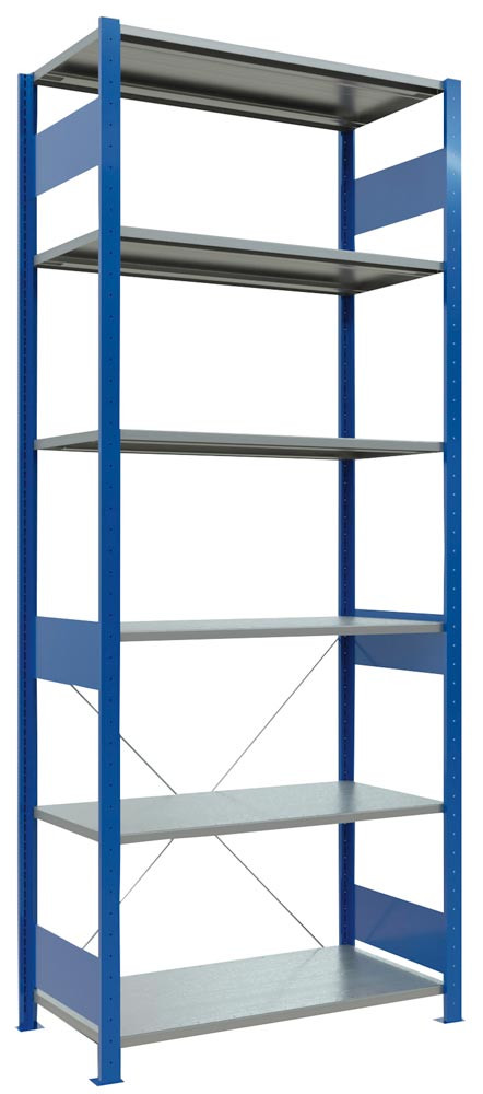 Steckregal RAL 5010 enzianblau, Grundfeld, 6 verzinkte Fachböden, BxTxH 1000x500x2500 mm, Fachlast 150 kg