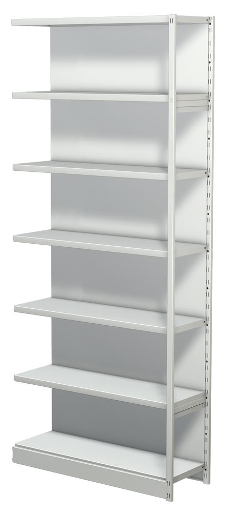 ∙ Optimale Raumausnutzung ∙ Fachböden 30 mm stark, im Raster von 59 mm höhenverstellbar ∙ Regalpfosten aus Kastenprofilen mit glatten Fronten ∙ Serienmäßig mit bodenbündiger Sockelblende ∙ Mit zusätzlichen Fachböden, Fachteilern, Seiten- und Trennstegen und Pendelhefterschienen individuell auszustatten ∙ Türen-Anbausätze, Seitenblenden und Zwischenwände ermöglichen die problemlose Integration von Schrankelementen ∙ Hochwertige Pulverbeschichtung in RAL 7035 lichtgrau