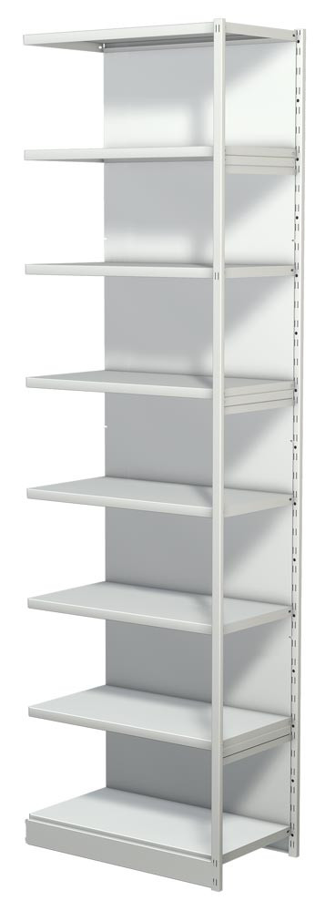 Steckregal mit Rückwand, Grundfeld, 8 Fachböden, 7 OH, BxTxH 750x300x2600 mm, lichtgrau E854475