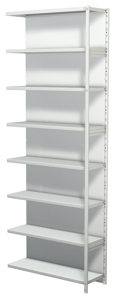 Steckregal mit Rückwand, Grundfeld, 8 Fachböden, 7 OH, BxTxH 750x300x2600 mm, lichtgrau E854475