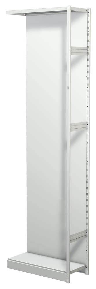 ∙ Optimale Raumausnutzung ∙ Fachböden 30 mm stark, im Raster von 59 mm höhenverstellbar ∙ Regalpfosten aus Kastenprofilen mit glatten Fronten ∙ Serienmäßig mit bodenbündiger Sockelblende ∙ Mit zusätzlichen Fachböden, Fachteilern, Seiten- und Trennstegen und Pendelhefterschienen individuell auszustatten ∙ Türen-Anbausätze, Seitenblenden und Zwischenwände ermöglichen die problemlose Integration von Schrankelementen ∙ Hochwertige Pulverbeschichtung in RAL 7035 lichtgrau