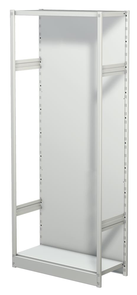∙ Optimale Raumausnutzung ∙ Fachböden 30 mm stark, im Raster von 59 mm höhenverstellbar ∙ Regalpfosten aus Kastenprofilen mit glatten Fronten ∙ Serienmäßig mit bodenbündiger Sockelblende ∙ Mit zusätzlichen Fachböden, Fachteilern, Seiten- und Trennstegen und Pendelhefterschienen individuell auszustatten ∙ Türen-Anbausätze, Seitenblenden und Zwischenwände ermöglichen die problemlose Integration von Schrankelementen ∙ Hochwertige Pulverbeschichtung in RAL 7035 lichtgrau