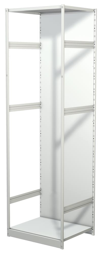 ∙ Optimale Raumausnutzung ∙ Fachböden 30 mm stark, im Raster von 59 mm höhenverstellbar ∙ Regalpfosten aus Kastenprofilen mit glatten Fronten ∙ Serienmäßig mit bodenbündiger Sockelblende ∙ Mit zusätzlichen Fachböden, Fachteilern, Seiten- und Trennstegen und Pendelhefterschienen individuell auszustatten ∙ Türen-Anbausätze, Seitenblenden und Zwischenwände ermöglichen die problemlose Integration von Schrankelementen ∙ Hochwertige Pulverbeschichtung in RAL 7035 lichtgrau