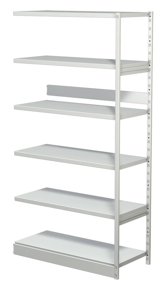Steckregal ohne Rückwand, Anbaufeld, 6 Fachböden, 5 OH, BxTxH 960x300x1900 mm, lichtgrau E854411