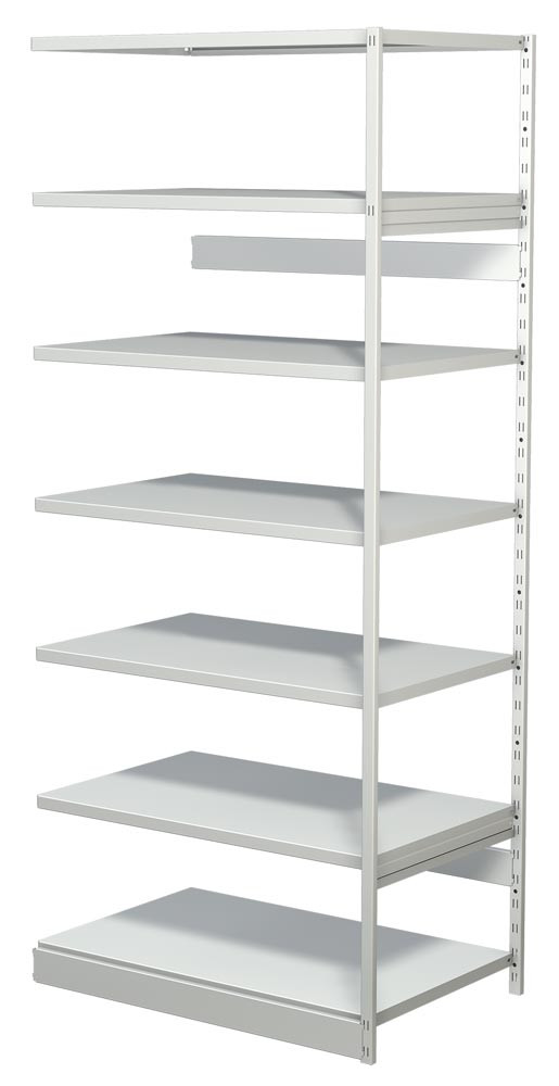 Steckregal ohne Rückwand, Anbaufeld, 7 Fachböden, 6 OH, BxTxH 960x300x2250 mm, lichtgrau E854415