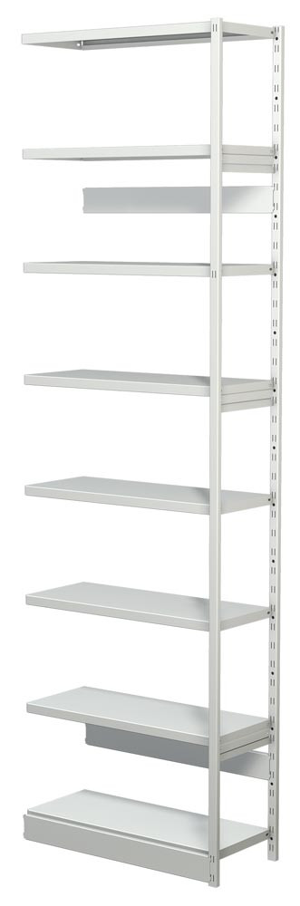 Steckregal ohne Rückwand, Anbaufeld, 8 Fachböden, 7 OH, BxTxH 960x300x2600 mm, lichtgrau E854419