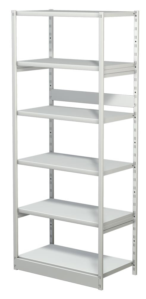 ∙ Optimale Raumausnutzung ∙ Fachböden 30 mm stark, im Raster von 59 mm höhenverstellbar ∙ Regalpfosten aus Kastenprofilen mit glatten Fronten ∙ Serienmäßig mit bodenbündiger Sockelblende ∙ Mit zusätzlichen Fachböden, Fachteilern, Seiten- und Trennstegen und Pendelhefterschienen individuell auszustatten ∙ Türen-Anbausätze, Seitenblenden und Zwischenwände ermöglichen die problemlose Integration von Schrankelementen ∙ Hochwertige Pulverbeschichtung in RAL 7035 lichtgrau