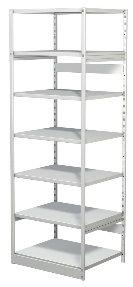 Steckregal ohne Rückwand, Grundfeld, 7 Fachböden, 6 OH, BxTxH 750x300x2250 mm, lichtgrau E854412