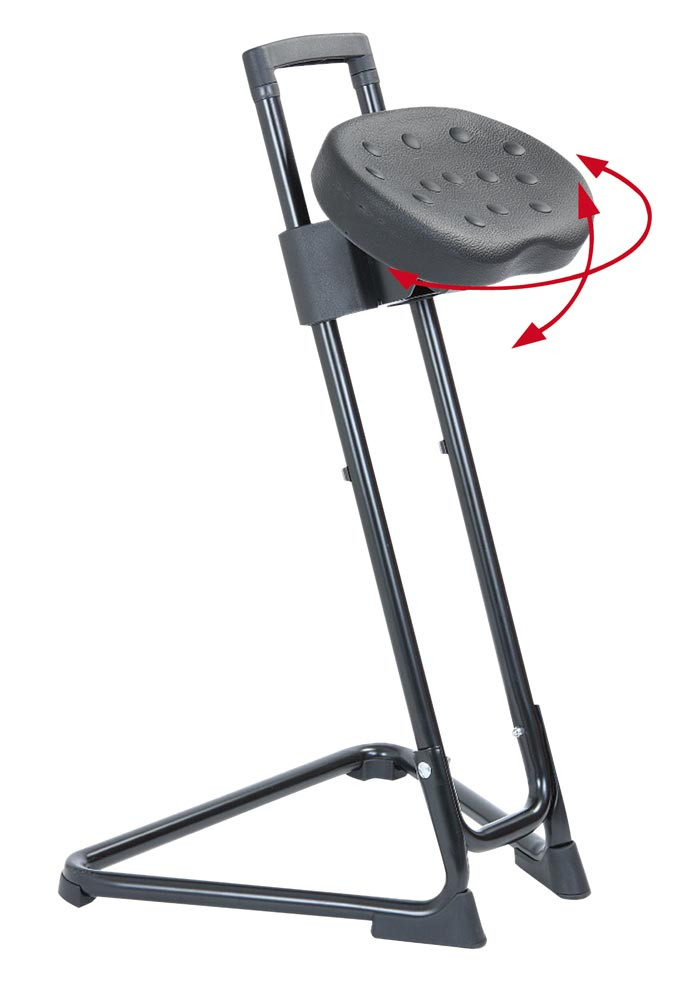 ∙ Stabiles Stahl- oder Edelstahlrohrgestell ∙ Ergonomisch geformter Komfortsitz aus Integralschaum ∙ Mit acht Rastpositionen höhenverstellbar von 600-850 mm ∙ Sitzneigung um 15° verstellbar ∙ Horizontal 16° in jede Richtung schwenkbar, mit Rückstellautomatik