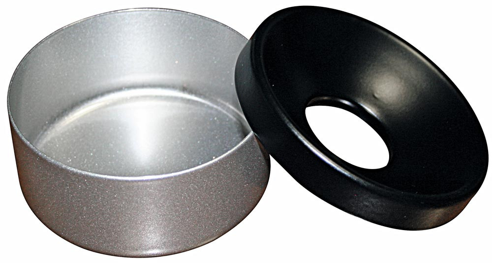 Tischascher, Durchm.xH mm 90x40 mm, Vol. 0,2 l, Behälter neusilber, Deckel RAL 9005 schwarz