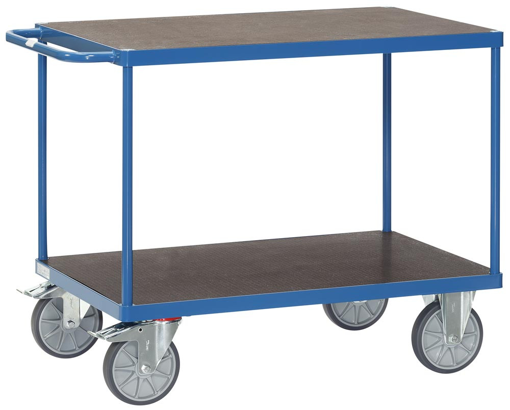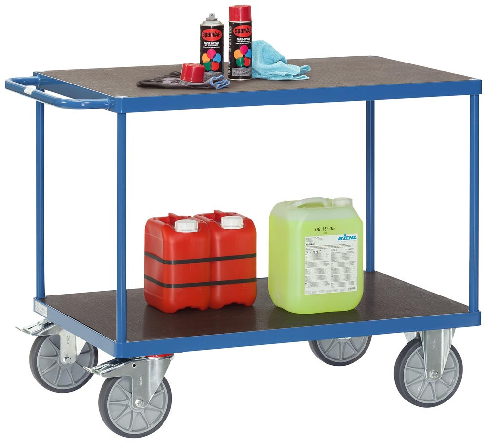 Tischwagen mit 2 wasserfesten Ladeflächen LxB 1200x800 mm, Außenmaße LxBxH 1397x809x900 mm, Traglast 600 kg, RAL 5007 brillantblau E6041069