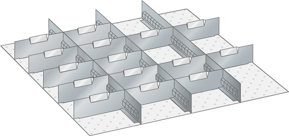 Trennwände, Fronthöhe 100 mm 3 Schlitzwände 36E, 15 Trennbleche 9E, Schubladennutzgröße BxT 612x612 mm E876227