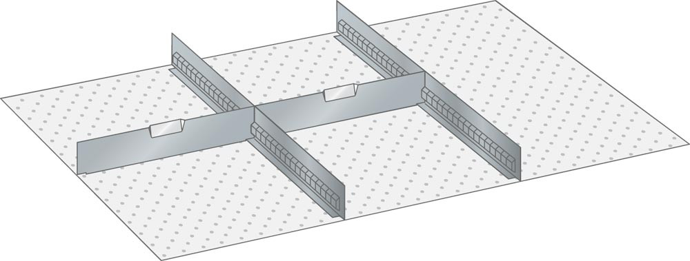 Trennwände, Fronthöhe 300 mm, 2 Schlitzwände 36E, 2Trennbleche 18E, Schubladennutzgröße BxT 918x612 mm