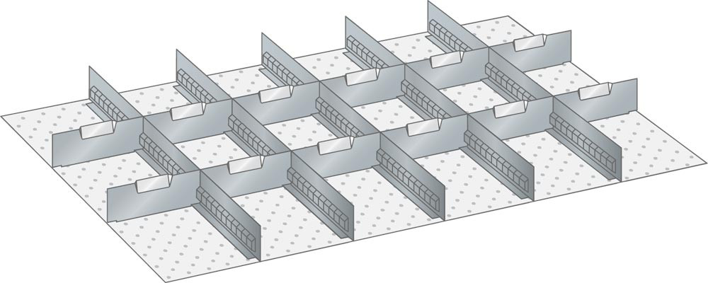 Trennwände, Fronthöhe 300 mm, 5 Schlitzwände 36E, 12 Trennbleche 9E, Schubladennutzgröße BxT 918x612 mm
