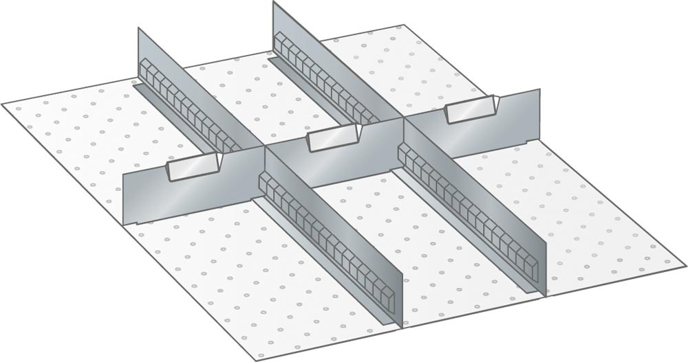 Trennwände, Fronthöhe 75 mm, 2 Schlitzwände 36E, 3 Trennbleche 9E, Schubladennutzgröße BxT 459x612 m m