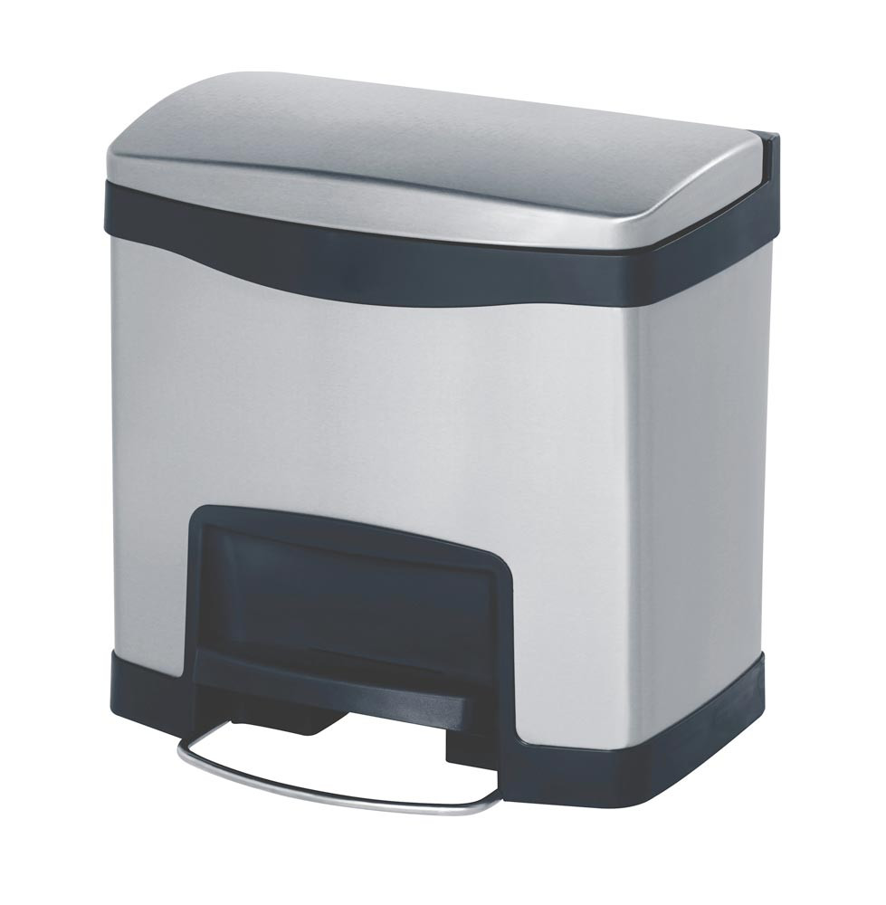 Tret-Abfallsammler, Edelstahl, Volumen 15 l, BxTxH 396x300x400 mm, Pedal an breiter Seite, schwarz