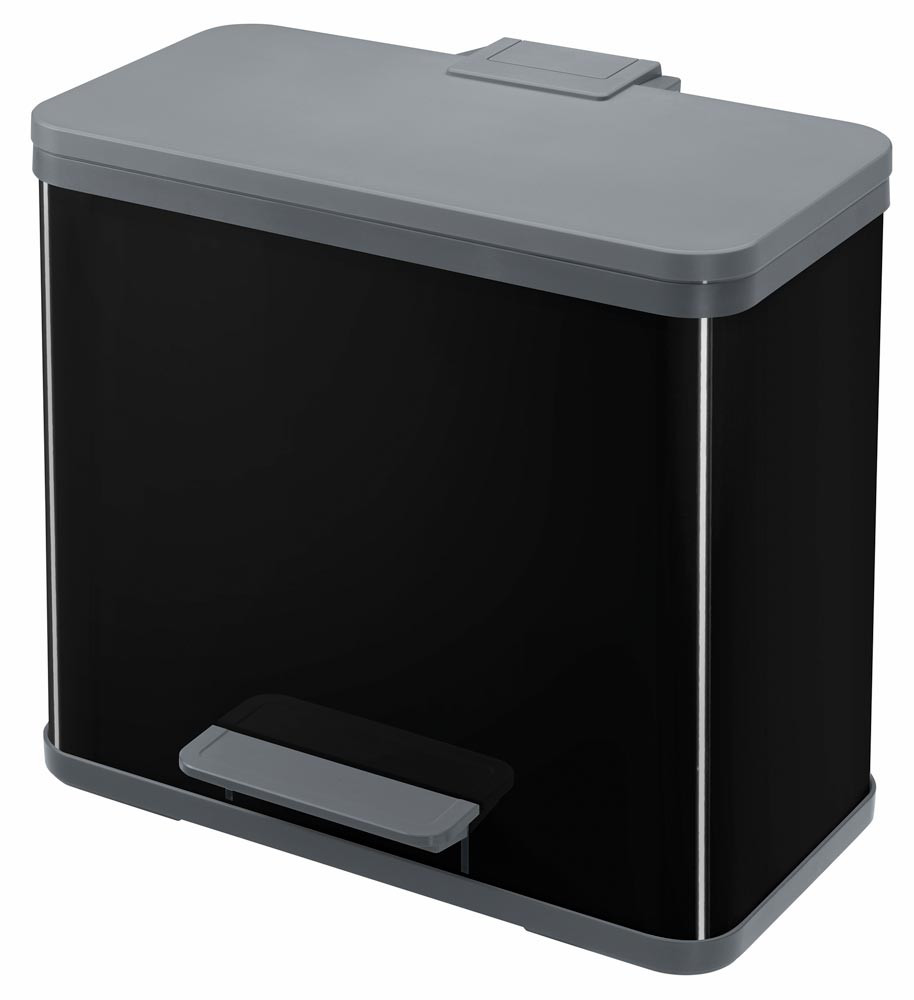 Tret-Abfallsammler, Volumen 9+17 l, BxTxH 470x340x430 mm, Gehäuse Stahlblech schwarz, Kunststoff-Deckel schwarz mit Soft-Close E6042091