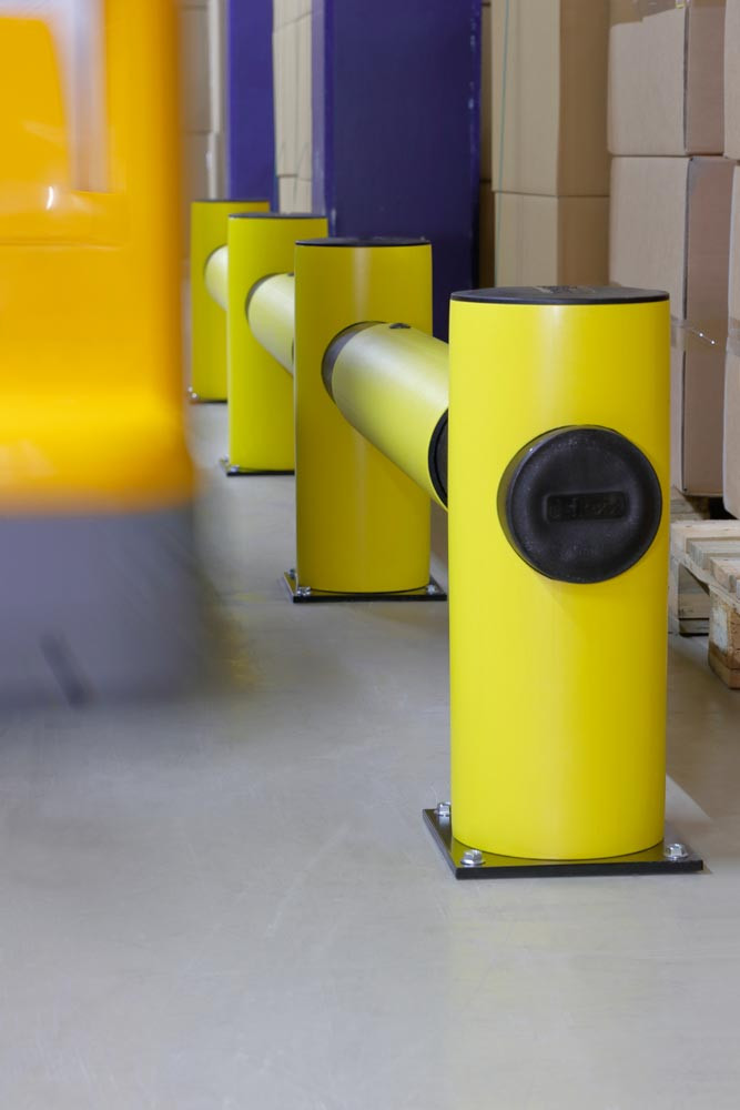 · Zum Schützen von Anlagen, Maschinen und Gebäuden · Flexibles PE ∙ 100 % recyclebar · Material verformt sich und kehrt nach der Kollision in den Ursprungszustand zurück · Minimiert Instandhaltungskosten · Trennt Verkehrswege und sichert die Betriebsabläufe · Modulare Bauweise im Baukastensystem · Endlos erweiterbar · Bodenplatte 225 x 225 mm · Befestigungsmaterial im Lieferumfang enthalten