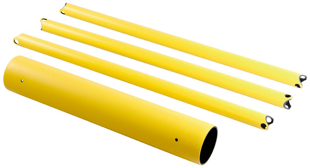 · Individueller Zuschnitt · Satz bestehend aus 3 Holmen mit Durchmesser 63 mm und 1 Rohr Durchmesser 160 mm · Länge 980-1510/400-929 mm · Farbe gelb
